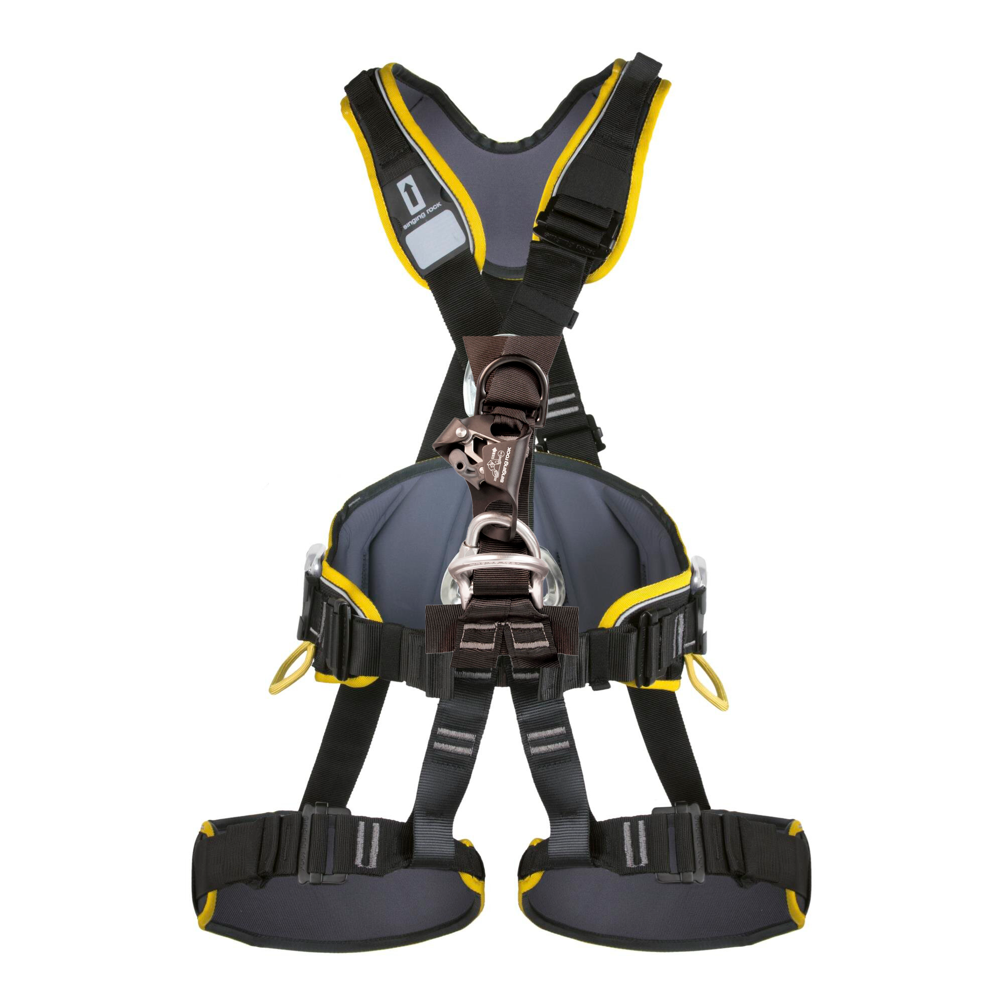 El Singing Rock Profi Worker 3D Standard es un arnés integral totalmente ajustable diseñado para trabajos en altura, posicionamiento y rescate. Incorpora cinchas continuas, hebillas Easy-Lock y un cinturón lumbar ancho acolchado que distribuye el peso para máximo confort durante jornadas prolongadas. Sus perneras anatómicas, tirantes ergonómicos y materiales resistentes a la abrasión garantizan durabilidad y movilidad. Cuenta con puntos de anclaje delanteros, trasero y laterales conforme a normas EN, elementos reflectantes para mayor visibilidad en condiciones oscuras (excepto versión negra) y múltiples portamateriales que facilitan la organización y transporte del equipo.