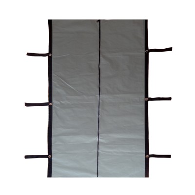 Bolsa de transporte de cadáver (bolsa mortuoria) fabricada en poliéster laminado con PVC impermeable, diseñada para alta resistencia y durabilidad. Incorpora seis asas reforzadas de cinta de polipropileno y seis ojillos metálicos que aumentan la resistencia al desgarro. Cuenta con cierre perimetral de doble carro N°8, con apertura total de 180°, y excelentes terminaciones que garantizan calidad y seguridad en su uso.