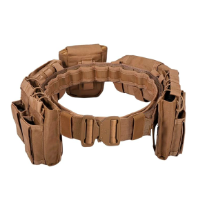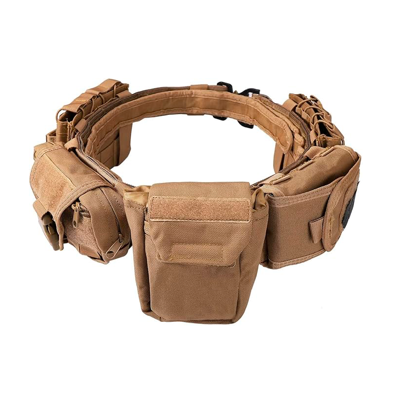 El cinturón táctico modular **TACTICAL BOMTURN** es un sistema de equipo moldeado tipo Molle, diseñado especialmente para personal de las fuerzas del orden, guardias de seguridad y entusiastas de deportes militares o extremos. Ofrece una distribución equilibrada del peso, ideal para llevar bolsas de mensajería, médicas u otros accesorios esenciales, lo que lo convierte en una opción versátil tanto para caminatas largas como para entornos laborales exigentes. Fabricado en resistente nylon 1000D, este cinturón de servicio se ajusta a cinturas de hasta 44,8 pulgadas y su set 7 en 1 incluye: un cinturón interior con gancho, un cinturón exterior de servicio, dos bolsas porta-mag, una bolsa de volcado Molle, una bolsa multifunción y una bolsa de almacenamiento.